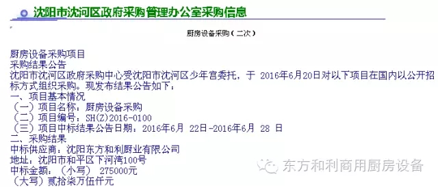 此次中標(biāo)工程主要為沈河區(qū)少年宮提供廚房設(shè)備,中標(biāo)金額27.5萬元,此前,東方和利廚業(yè)也在合作的客戶中贏得了良好口碑,樹立了良好信譽。為進一步站穩(wěn)全國市場打好基礎(chǔ),沈陽東方和利廚業(yè)定將繼續(xù)打造優(yōu)質(zhì)工程。沈陽東方和利廚業(yè)中標(biāo),離不開公司銷售部和內(nèi)勤部的全力協(xié)作,感謝所有努力的同事們!沈陽東方和利的明天必定更加精彩!