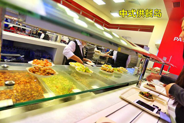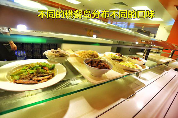 食堂全部是開(kāi)放式布局,就餐時(shí)間是按每個(gè)車(chē)間分時(shí)段就餐。不說(shuō)是單位食堂你會(huì)以為是一個(gè)經(jīng)營(yíng)有序的大型中西餐廳,食堂以獨(dú)立的供餐島分布不同的口味區(qū),除了傳統(tǒng)的中西餐外還有面檔和麻辣燙,以及供應(yīng)給穆斯林員工的回民餐飲區(qū),也有供應(yīng)給特殊員工的關(guān)愛(ài)餐區(qū),非常人性化。