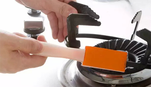 燃?xì)庠畋砻娴挠凸福捎弥竺鏃l后剩下的熱湯涂在其表面,過一會(huì)兒用布擦試,再用水沖凈。
