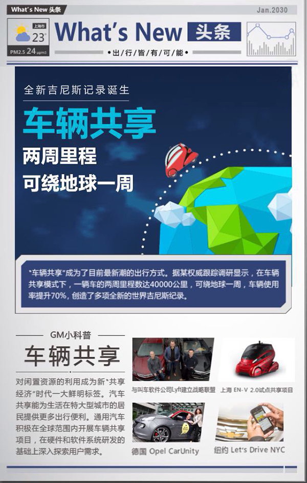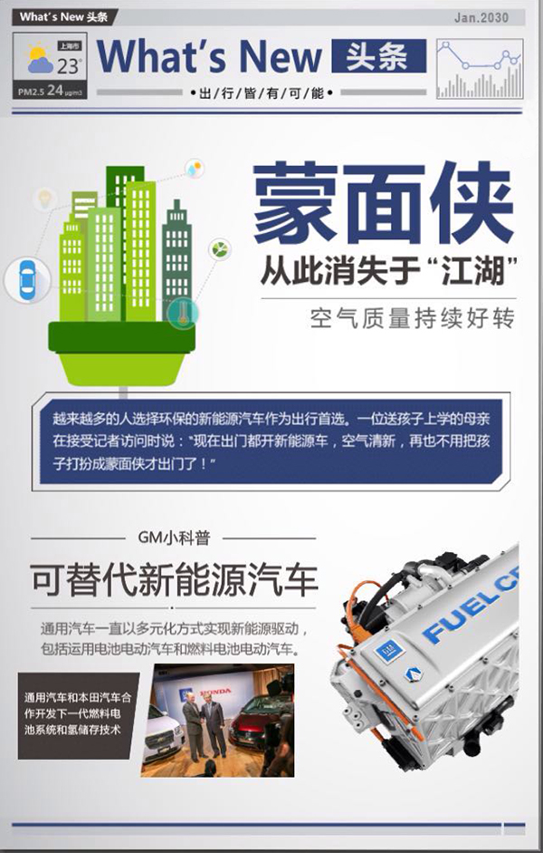 今天是2016年1月13日,想知道十幾年之后,我們的世界是什么模樣?有什么新鮮事發(fā)生?我們用什么交通工具出行?通用汽車(chē)給您郵寄一份來(lái)自2030年的電子報(bào),請(qǐng)您查閱。