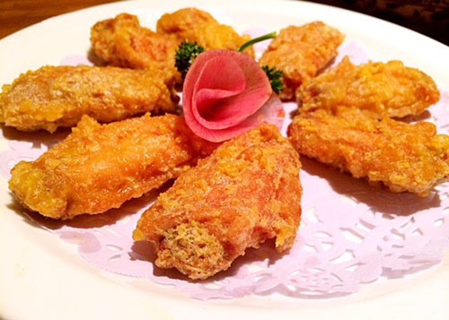 蛋黃雞翅是新白鹿招牌菜,據(jù)說10個顧客有9人都會點這道菜。一份菜有8個雞翅,量足,最大特點是制作簡單,上菜快。顧客評價:吃起來有淡淡的蛋香味,外脆里嫩,鮮香四溢。