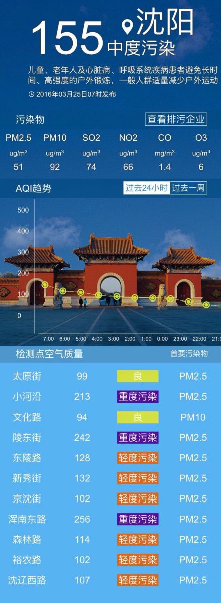 接下來(lái)共同關(guān)注沈陽(yáng)未來(lái)幾天的具體天氣情況:今天白天天氣晴朗,最高氣溫將提升到11℃左右,北風(fēng)3-4級(jí),空氣質(zhì)量中度污染;今天夜間最低氣溫-5℃左右。