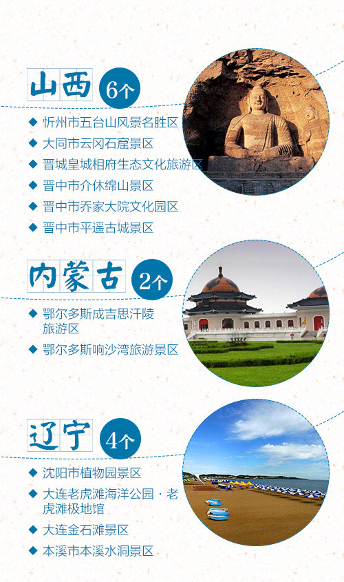 盼望著,盼望著,中秋節(jié)、國(guó)慶節(jié)的腳步近了~ 估計(jì)有小伙伴已經(jīng)做好了放假攻略。全國(guó)5A級(jí)景區(qū)新增江蘇連云港花果山景區(qū)、云南保山騰沖火山熱海旅游區(qū)等6家,對(duì)嚴(yán)重不達(dá)標(biāo)的兩家5A景區(qū)湖南長(zhǎng)沙市橘子洲、重慶神龍峽景區(qū)摘牌。目前,全國(guó)5A景區(qū)共有217家,看看你想去哪里,留下你的足跡!