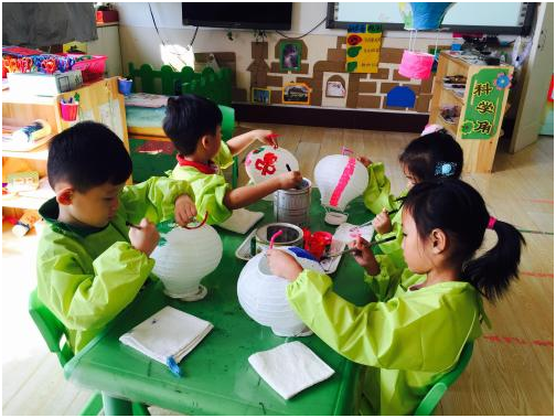 在活動(dòng)整合上,打破領(lǐng)域間的壁壘,讓美術(shù)活動(dòng)的觸角伸展到各個(gè)領(lǐng)域,成為領(lǐng)域整合的紐帶。如美術(shù)活動(dòng)中的"創(chuàng)意繪本"、"伴我成長連環(huán)畫"、"小小加工廠"等內(nèi)容,將美術(shù)巧妙的同語言、社會(huì)、健康等領(lǐng)域結(jié)合,讓孩子們?cè)诰獍l(fā)展的同時(shí)體味到成功的快樂。
