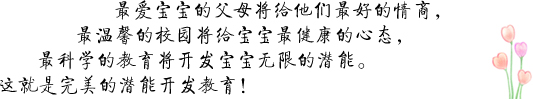 應用最先進的腦科學理論,從胎兒期開始開發(fā)潛能,在0—6歲期間均衡開發(fā)右左腦的潛在能力,讓所有受教育者的情商與智商得到極大化的開發(fā),使他們成為21世紀的精英人才。