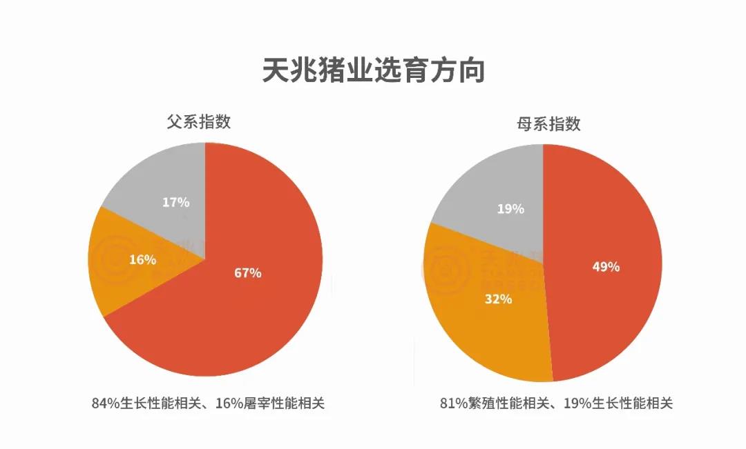天兆豬業(yè)經(jīng)過充分的市場調(diào)研,針對中國市場的需要,結(jié)合實際生產(chǎn)條件,以引進(jìn)的加系、法系種豬為基礎(chǔ)進(jìn)行持續(xù)選育,并在選育方向上強(qiáng)化了繁殖性能、生長性能、屠宰性能等性狀所占的權(quán)重,通過十多年的持續(xù)選擇,不斷提升種豬綜合性能水平。
