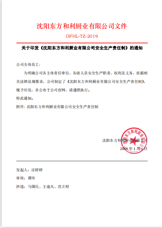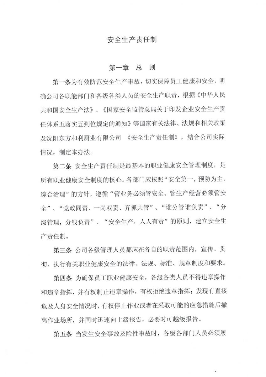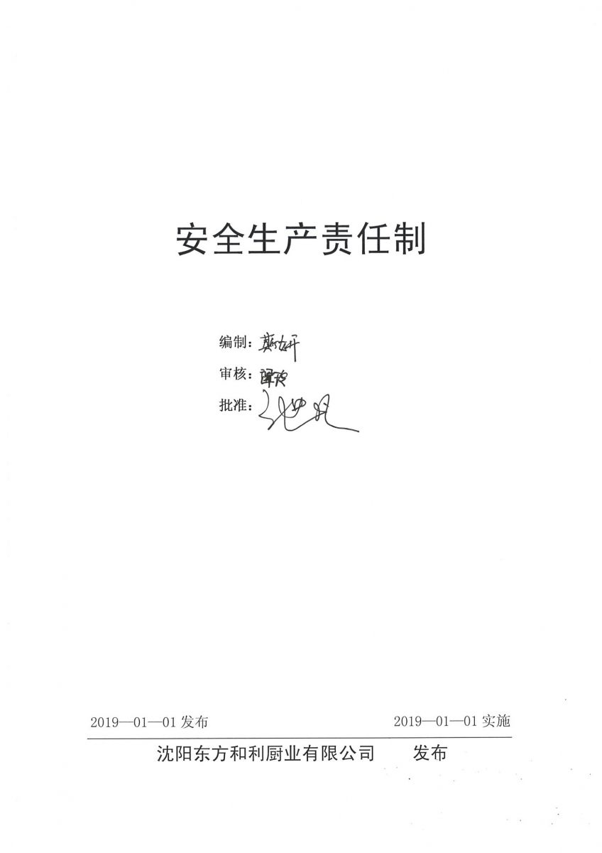 沈陽東方和利廚業(yè)有限公司安全生產(chǎn)責(zé)任制