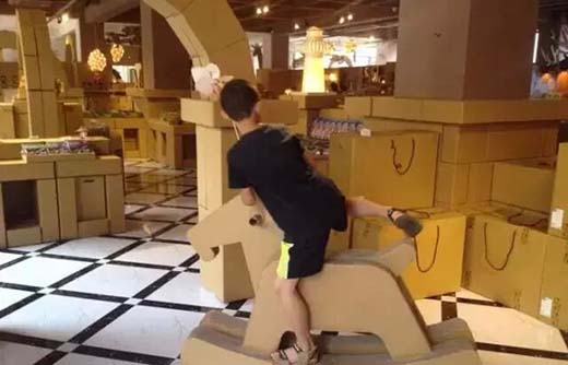 在"紙箱王創(chuàng)意園區(qū)",結(jié)合創(chuàng)意人、設(shè)計人、印刷人所組成的紙品王國,成了一個兼具觀賞、娛樂、餐飲等功能的綜合性休閑中心,讓人嘆為觀止。裝飾陳設(shè)都是"紙器",如下圖。