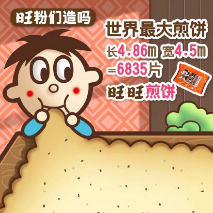 全世界最大的煎餅是來自俄羅斯的長(zhǎng)4.86寬4.5米的薄煎餅。大小相當(dāng)于6835片旺旺煎餅。