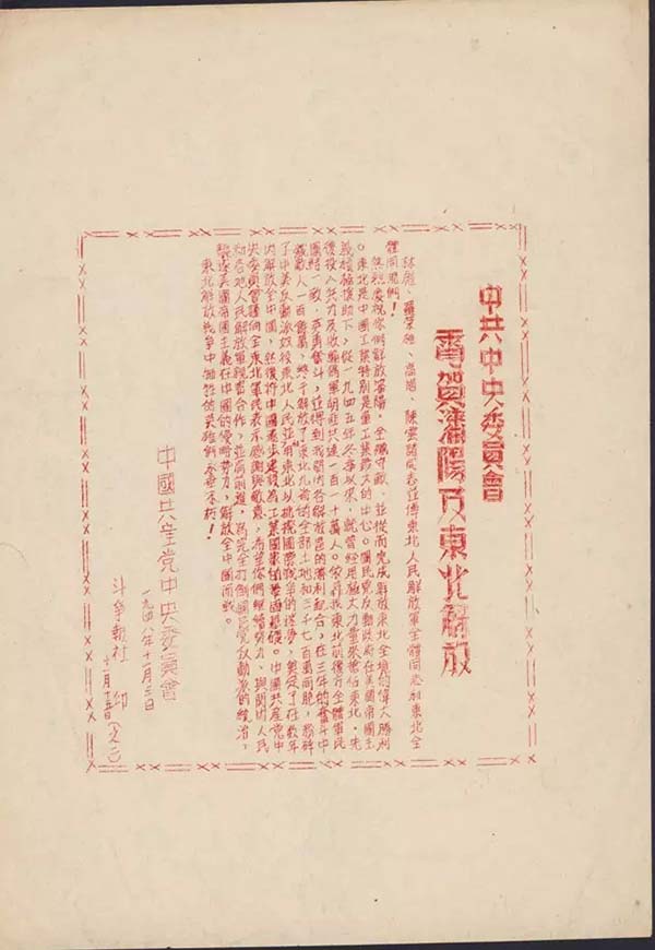那年,中共中央電賀沈陽(yáng)解放的傳單還是這個(gè)模樣。在百年砥礪后,沈陽(yáng)已是如今的模樣: