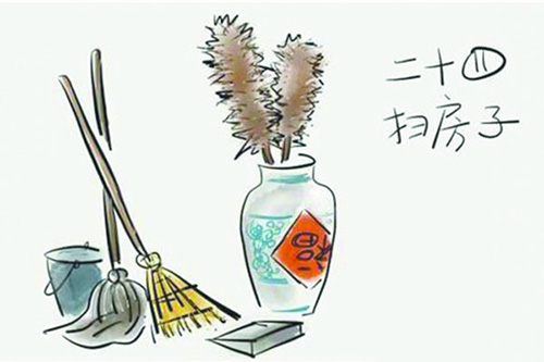 舉行過灶祭后,臘月二十四便正式地開始做迎接過年的準(zhǔn)備。古代把春節(jié)大掃除稱為"掃年",后來(lái)逐漸演變?yōu)槟杲K的衛(wèi)生大掃除。北方稱"掃房",南方叫"撣塵"。家家戶戶都要打掃環(huán)境,清洗各種器具,拆洗被褥窗簾,灑掃六閭庭院,撣拂塵垢蛛網(wǎng),疏浚明渠暗溝。掃房以后,全家就要開始籌辦年貨,請(qǐng)香蠟紙碼、供品,寫對(duì)聯(lián)、剪窗花……