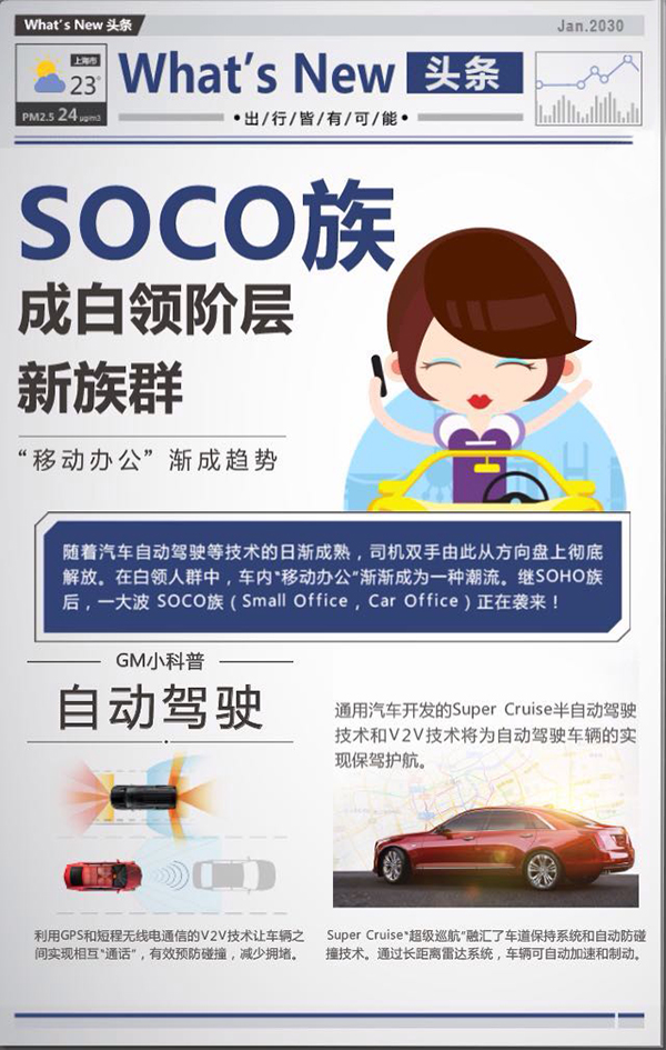 今天是2016年1月13日,想知道十幾年之后,我們的世界是什么模樣?有什么新鮮事發(fā)生?我們用什么交通工具出行?通用汽車(chē)給您郵寄一份來(lái)自2030年的電子報(bào),請(qǐng)您查閱。