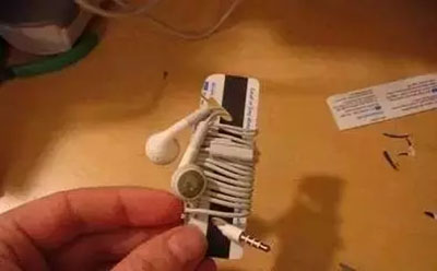 把耳機(jī)線繞著缺口纏起來,就能很好地纏繞在繞線器上了。