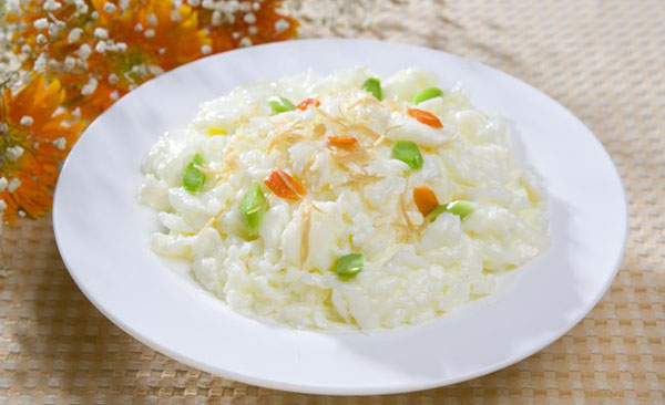 不論是炒鮮奶、炒豆?jié){還是炒蛋白,都要用到軟炒的烹調(diào)方法。很多廚師在烹調(diào)時,為了防止粘鍋,采用多油炒制的方法,這種操作其實是錯誤的。正確的操作方法是:猛火燒熱炒鍋,待鍋底變紅,然后倒入冷油,迅速旋轉(zhuǎn)鍋身,浸潤鍋底和鍋壁。