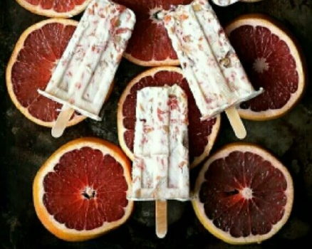 淡奶油加適量糖,打發(fā)至濕性發(fā)泡,和血橙肉、適量堅果混合,灌入模具,凍硬即可。