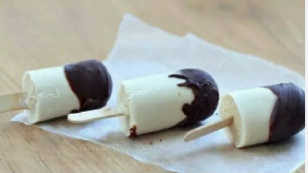 奶油打發(fā)灌入模具、凍硬,巧克力隔水融化,備用,冰棒脫模后沾上巧克力就做好了。