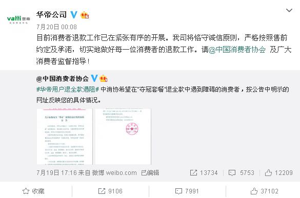 華帝在退款活動(dòng)上種種設(shè)限,讓他們的口碑急轉(zhuǎn)直下,網(wǎng)友稱他們?cè)O(shè)置"霸王條款",毫無誠(chéng)意。甚至,18日中消協(xié)在微博上出面喊話,希望華帝履行承諾。并針對(duì)于這個(gè)情況表示,"把廣告費(fèi)花在消費(fèi)者身上,這個(gè)營(yíng)銷創(chuàng)意還是挺贊的!希望華帝切實(shí)履行承諾,按照售前約定和承諾,切實(shí)做好每一位消費(fèi)者的退款工作。誠(chéng)信,才是任何營(yíng)銷的完美注腳。"。昨天凌晨,華帝發(fā)微博稱,將履行承諾。