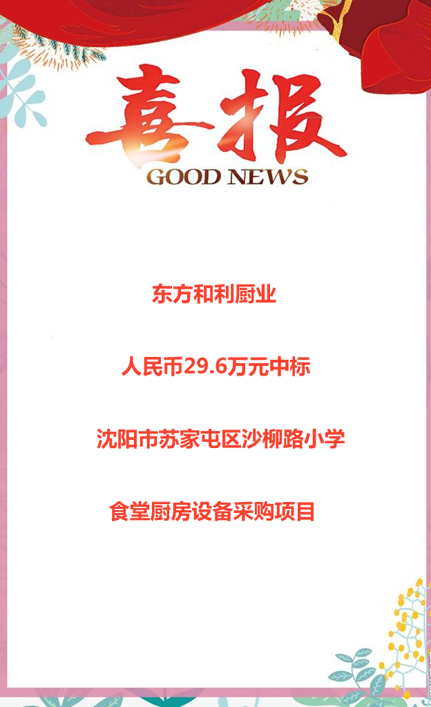 喜報(bào):東方和利廚業(yè)中標(biāo)蘇家屯沙柳路小學(xué)食堂廚房設(shè)備采購(gòu)項(xiàng)目