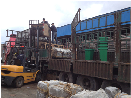 5月4日休假歸來,我公司又迎來北鎮(zhèn)(北寧)市一廚房工程的開工,休假后精神飽滿的車間師傅們正忙活著為工程所需廚房設(shè)備打包裝車。因該廚房工程所需要的廚具設(shè)備較多,大家都開動(dòng)腦筋,想辦法使設(shè)備在裝車后能充分利用空間,并且穩(wěn)固。師傅們熟練的操縱著叉車,又快又穩(wěn)的將包裝箱按放在貨車上,而貨車上負(fù)責(zé)擺放的師傅也齊心合力的將其小心翼翼的碼放,并做好捆綁加固工作。