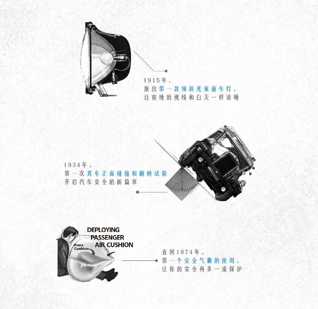 1996年全球第一個(gè)車(chē)內(nèi)免提語(yǔ)音通訊系統(tǒng)誕生;2005年,V2V通訊技術(shù),為汽車(chē)與世界對(duì)話而努力;2010年,EN-V電動(dòng)聯(lián)網(wǎng)汽車(chē),為未來(lái)城市交通遠(yuǎn)景而生;2015年,從燃料車(chē)到新能源車(chē),我們不斷努力。