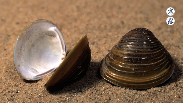 二候,雀入大水為蛤,深秋天寒,雀鳥都不見了,古人看到海邊突然出現(xiàn)很多蛤蜊,并且貝殼的條紋及顏色與雀鳥很相似,所以便以為是雀鳥變成的。