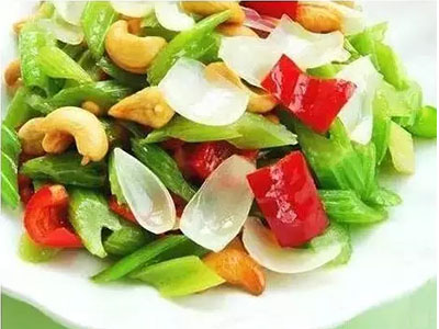 食材:西芹200g、 胡蘿卜100g、百合適量、生抽適量、花生適量。