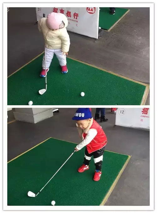 寶貝們已經(jīng)可以獨立打高爾夫球了,一舉一動真的很標準呢!