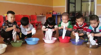 【釋義】將有肥皂的衣服在清水里漂洗。