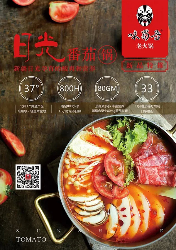 味蜀吾經過許久的探尋,研發(fā),秘調,終于在最適合的冬季,最感恩的日子里迎來了最暖心的日光番茄鍋。